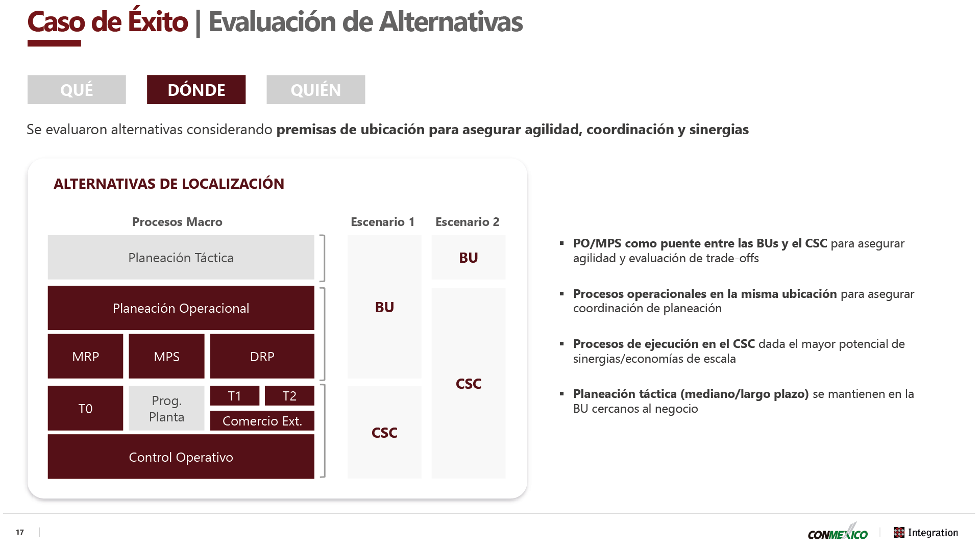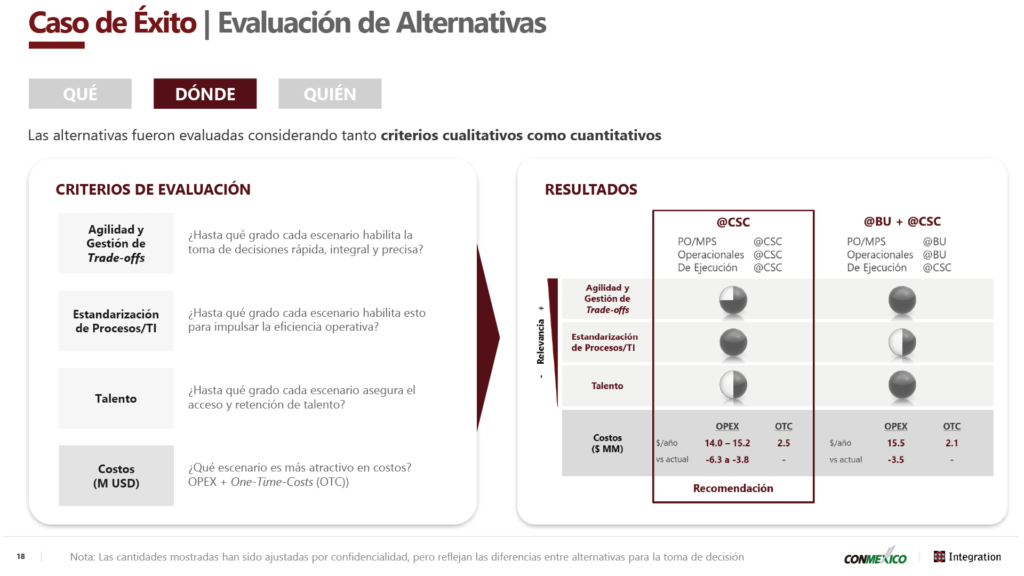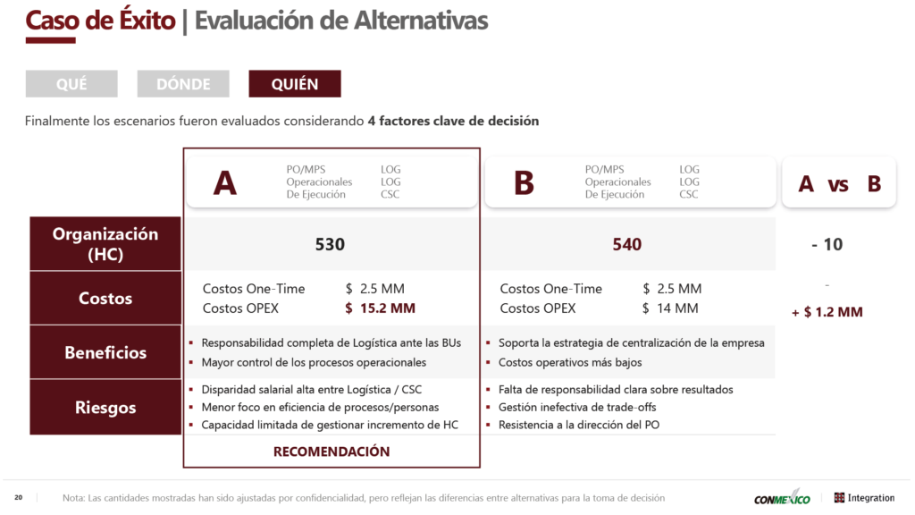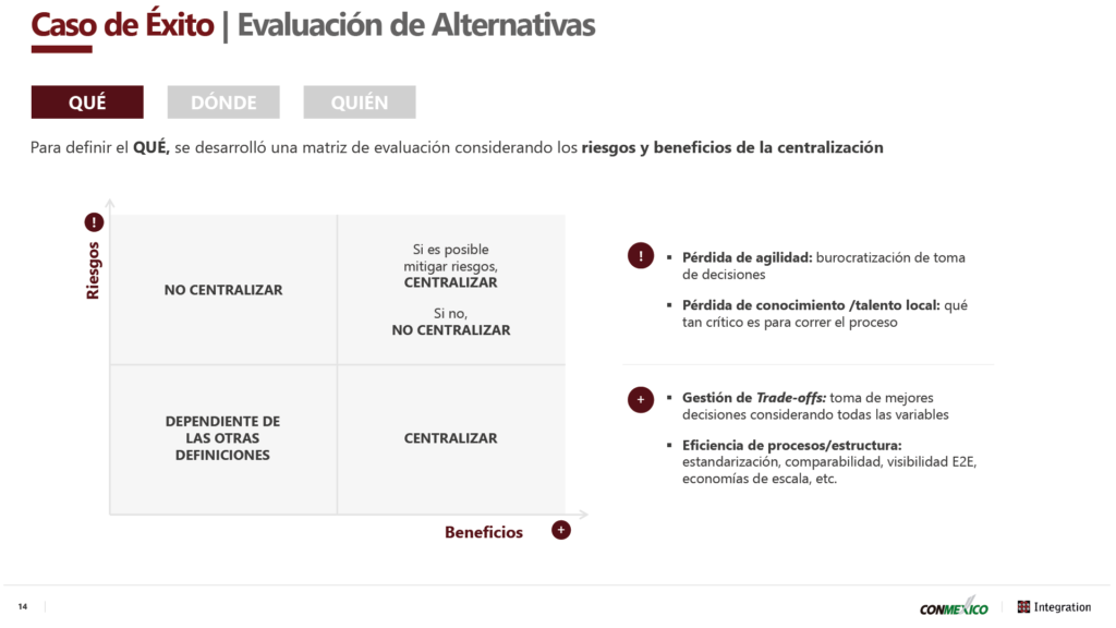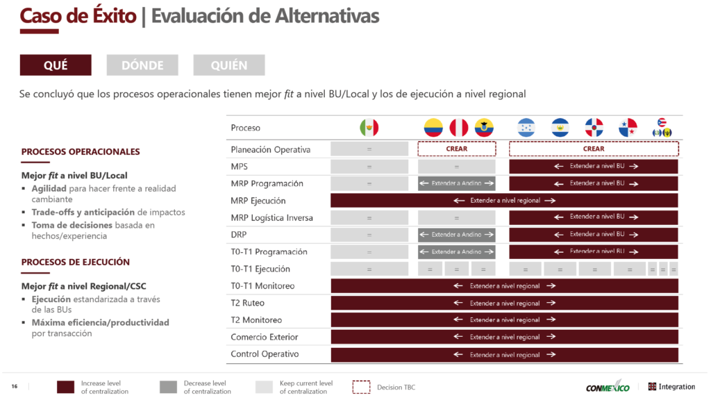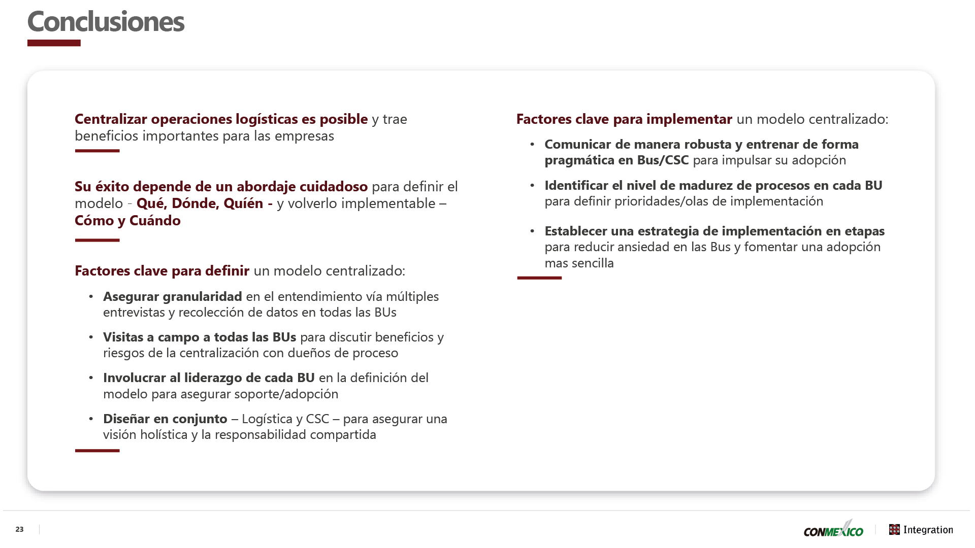 The key takeaway from the presentation is that centralizing logistics operations is indeed possible and offers important benefits for companies. However, success depends on taking a careful approach when defining the model, from ensuring robust communication plans to establishing a phased deployment strategy and getting different BUs on board through cooperation and field visits.