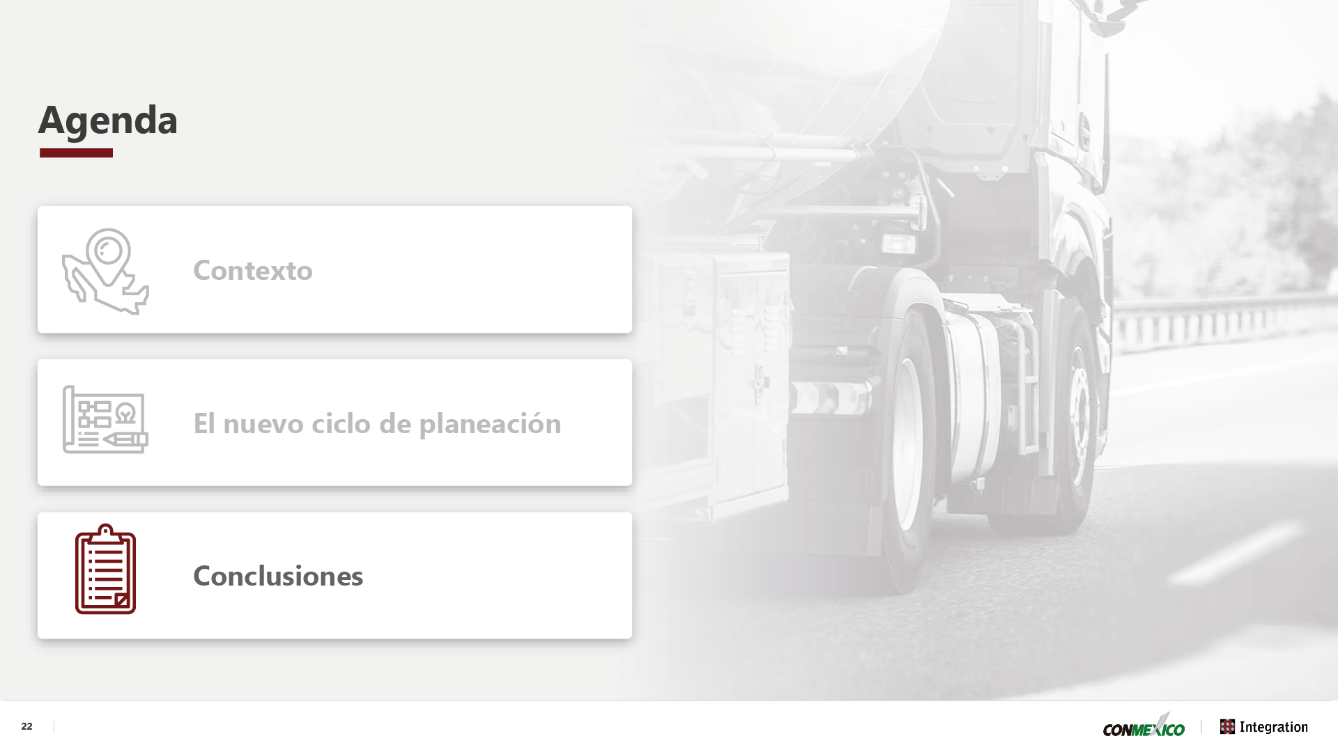 Last week, Alejandro Martinez and Ricardo de la Cueva from Integration Consulting had the opportunity to participate in the monthly meeting of the Logistics Committee at ConMéxico, the Mexican Association of Consumer Goods companies. The meeting included the participation of representatives from numerous big-name players.
